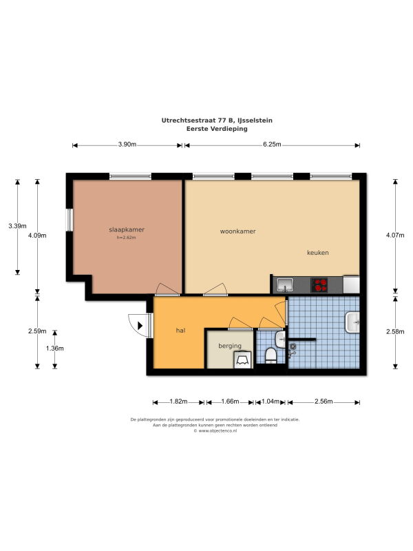 Het appartement is circa 61 m² verdeeld over: